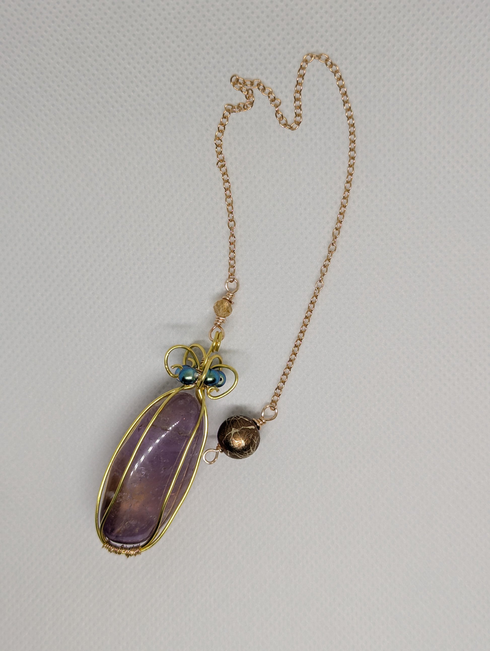 PENDULUM - Anetrine (amethyst & citrine) wrapped with Gold-colored wire