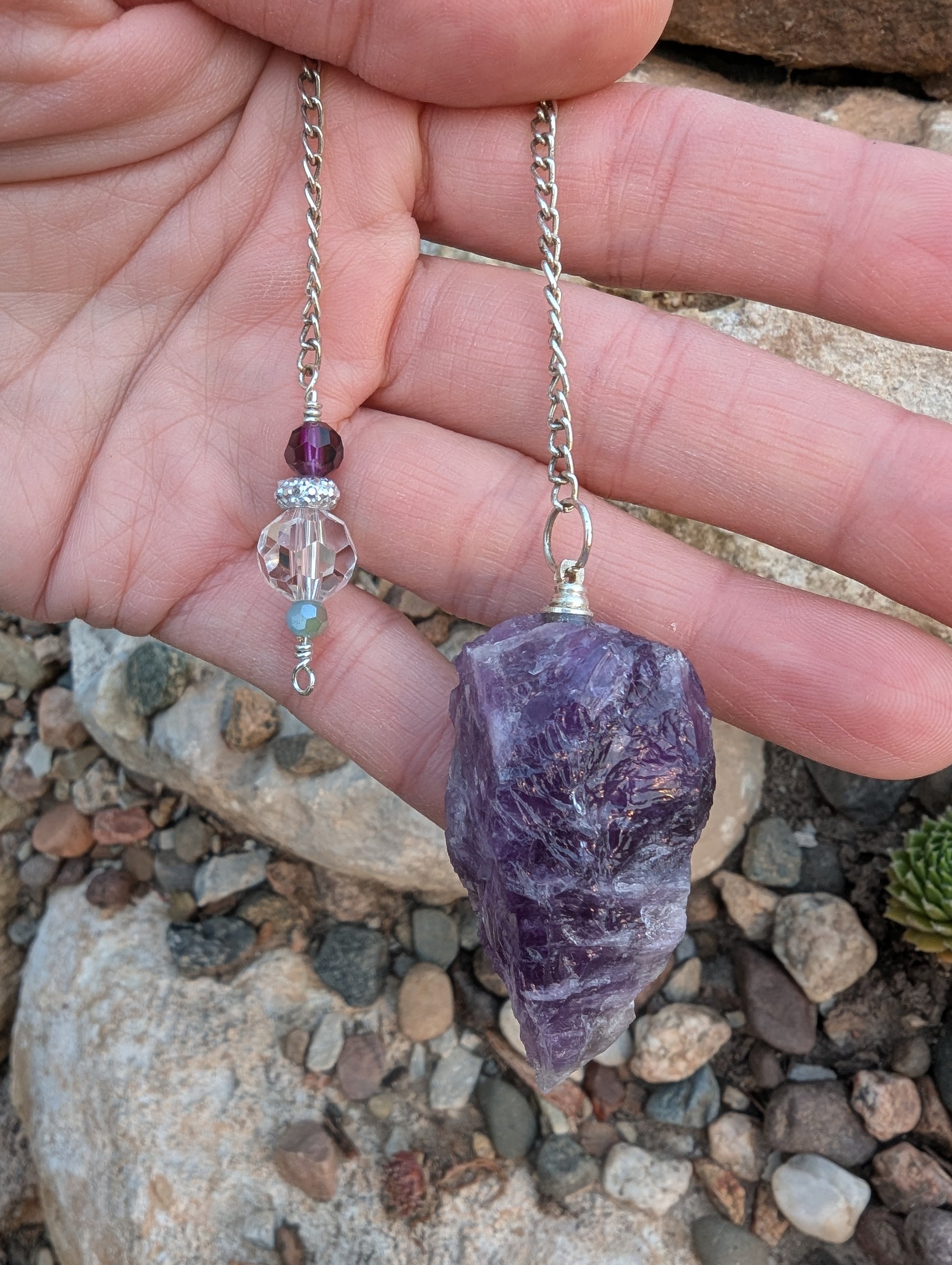 PENDULUM - Amethyst Pendulum - Raw amethyst with clear & purple beads